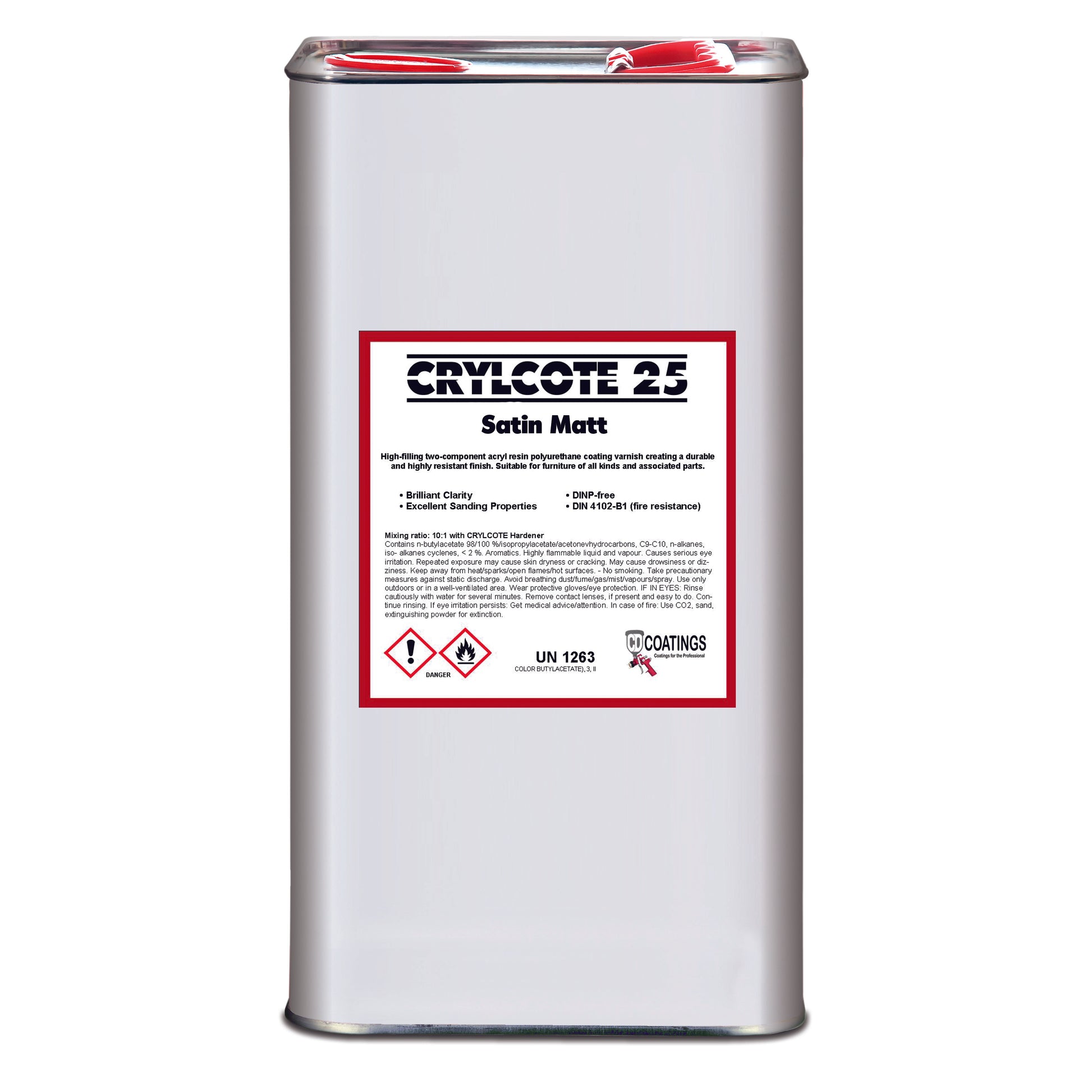 Crylcote 25 is an especially clear, high build and water resistant 2-component polyurethane-acrylic resin finish. Suitable for the priming and final coating of wood or wooden materials.